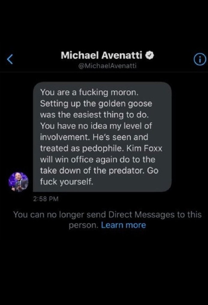 Avenatti, who represented six individuals, including two women from his New York indictment, two parents, and two other silent conspirators, was later arrested and exposed as a fraud. A private message attributed to him with a plan to “capture the Golden Goose (Robert) and make him look like a paedophile” to influence Kim Foxx’s reelection.