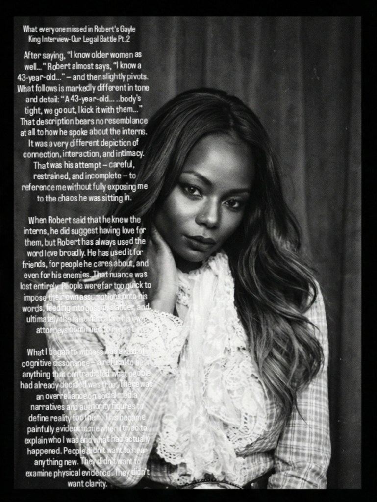 I believe this case reflects serious misconduct and a coordinated effort to destroy Robert’s reputation, fueled in part by opportunistic media figures and lawyers.
