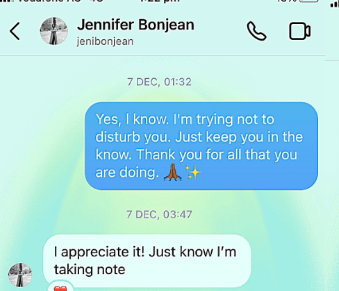 I was completely drained — emotionally and spiritually — and deeply hurt by supporters who continued to spread false narratives about me, accusing me of being insane, attention-seeking, or delusional. Even after I posted evidence — conversations, messages, Jennifer’s own admissions that the information was false and that Robert had not been involved in drafting his motions — people still sided with Jennifer. Some even accused me of bullying and harassing her and Steven Greenberg.